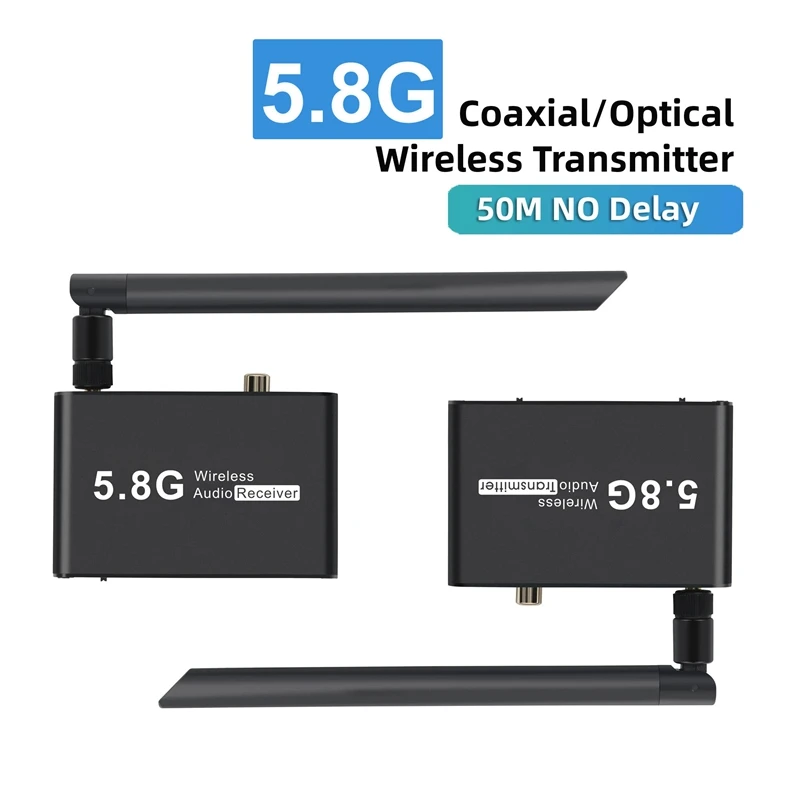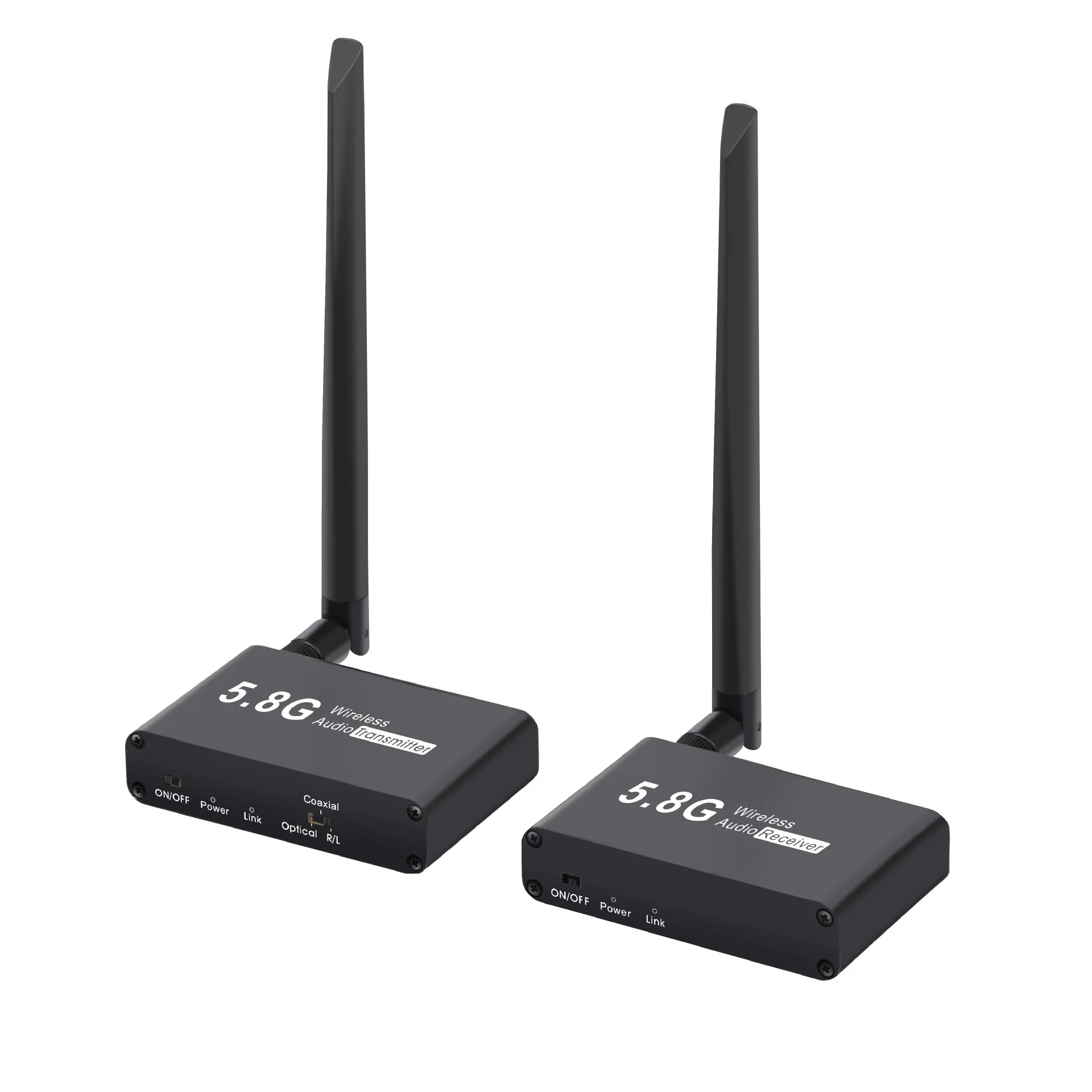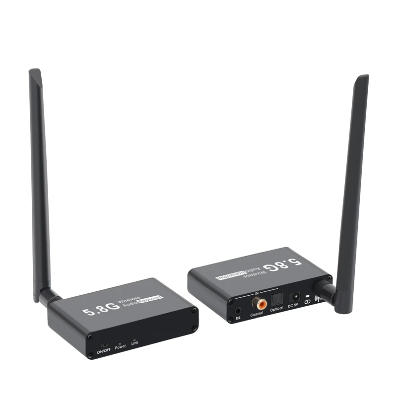 Comprar Sistema de transmisión de Audio inalámbrico 5,8G, fibra óptica Coaxial, transmisor receptor de Audio de 50m para amplificador, altavoz, barra de sonido