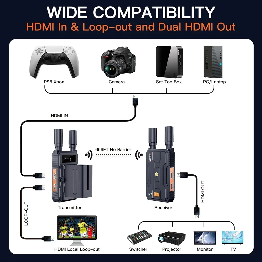 Comprar Sistema de transmisión inalámbrica 4K pantalla HDMI Dual con transmisor y receptor de vídeo HDMI extensor HDMI para cámara DSLR PC