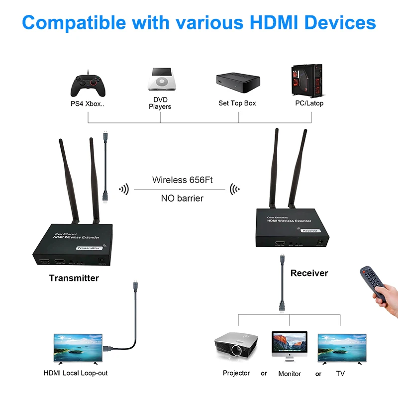 Comprar Sistema de transmisión inalámbrica, extensor de pantalla para compartir HDMI, transmisor y receptor de vídeo para DVD, cámara DV, PC a Monitor de TV, 200M
