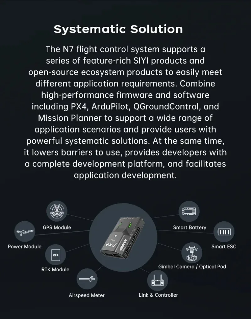 SIYI N7 Modelo de control de vuelo Traverser de ala fija Posicionamiento GPS ArduPilot Open Source PX4 UAV
