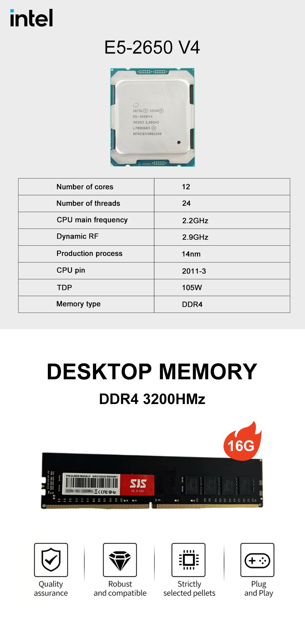 Comprar SJS-Conjunto de placa base X99, procesador Intel LGA 2011-3 Xeon E5 2650 V4 + memoria RAM DDR4 de 16 GB, 3200MHz, M.2 X99