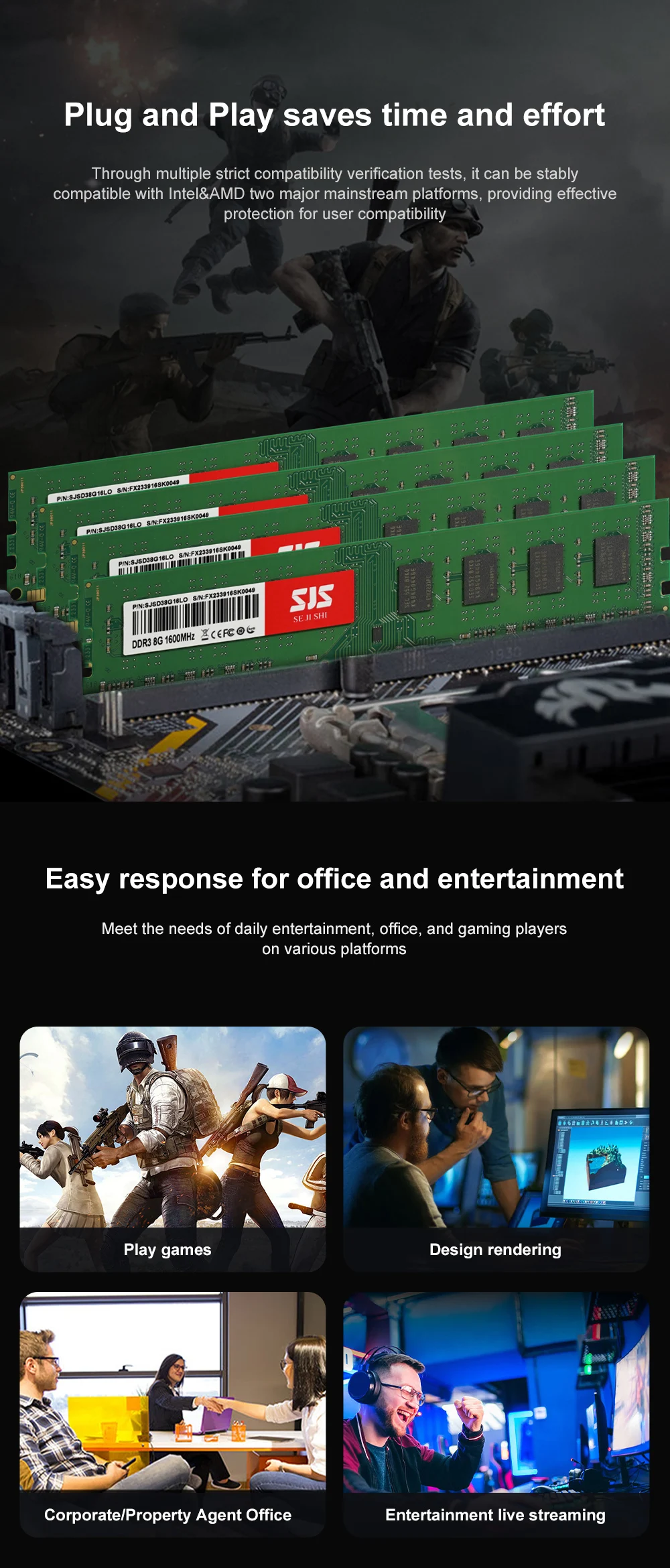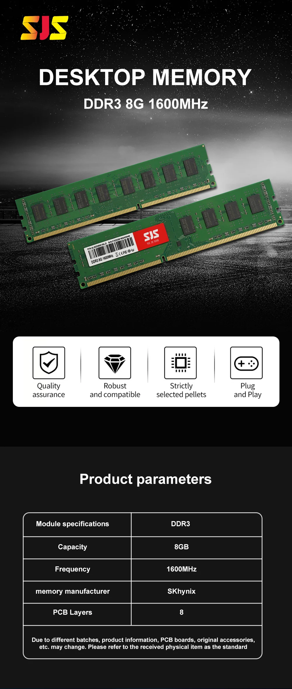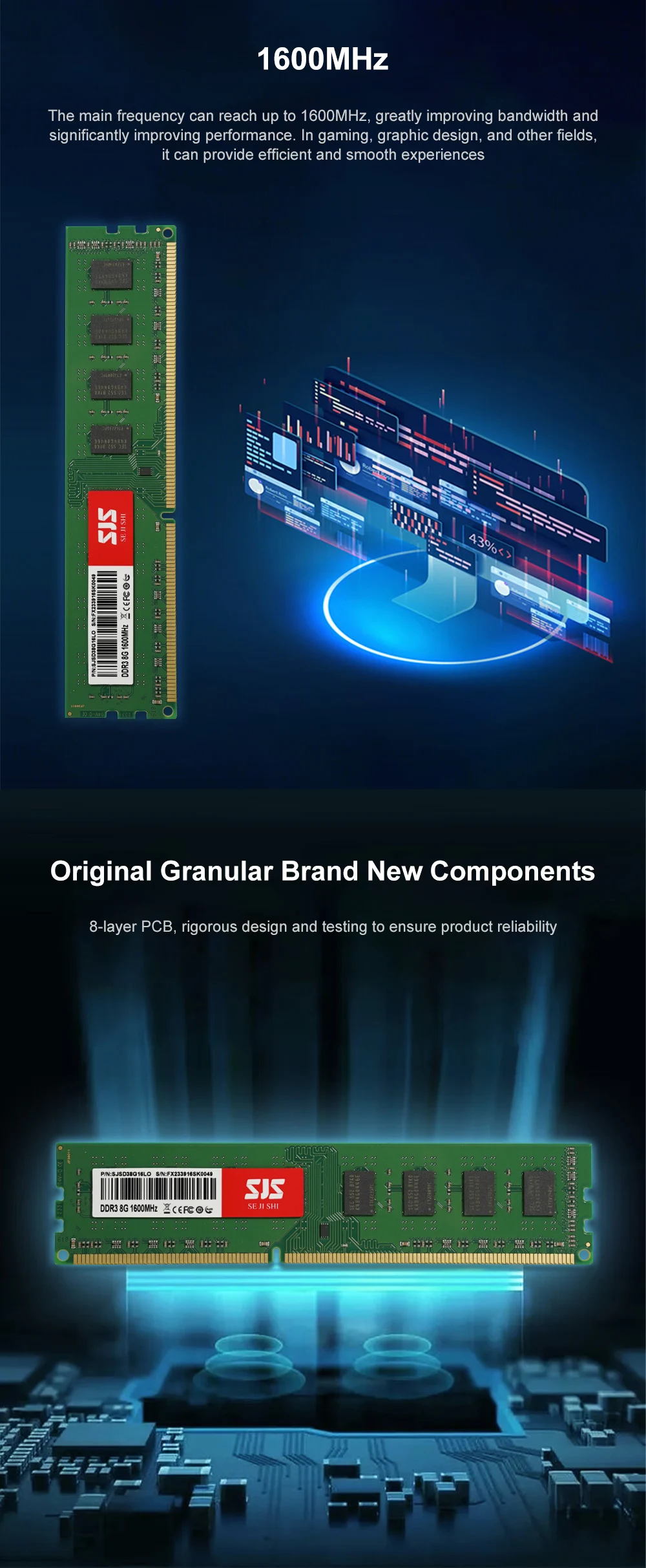 Comprar SJS-Memoria DDR3 para ordenador de escritorio, Memoria RAM DDR3 de 8GB y 1600MHz, Dimm, compatible con placa base DDR4, 1 unidad/2 piezas/4 piezas