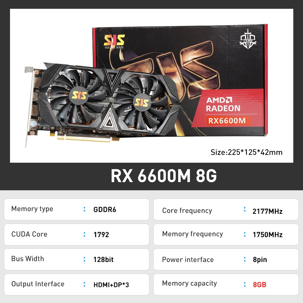 Comprar SJS-tarjeta gráfica AMD Radeon RX 6600M 6600 8GB GPU GDDR6 RX6600M 2177-2448 MHz PCI Express 4,0 HDMI DP, placa de vídeo de escritorio