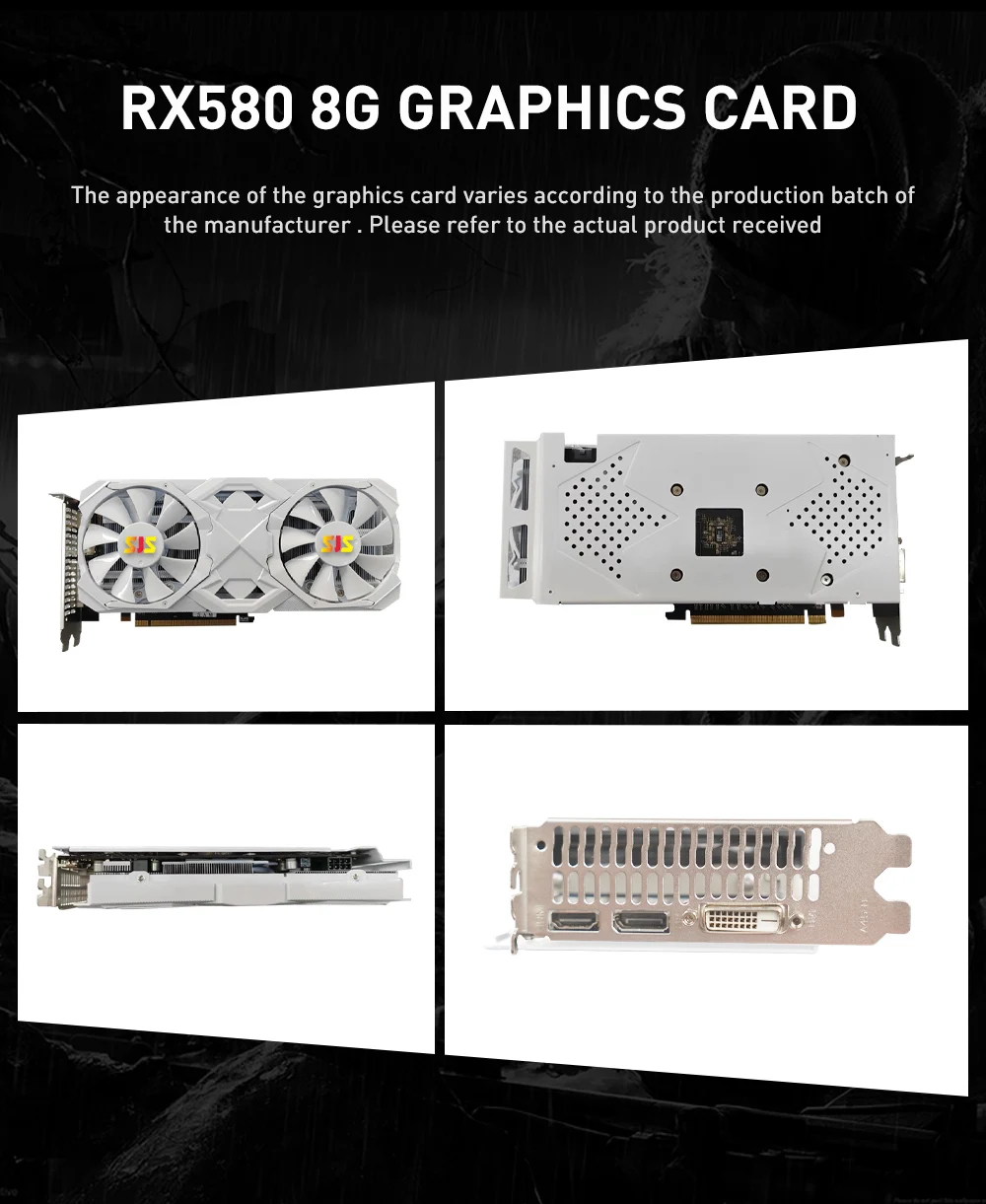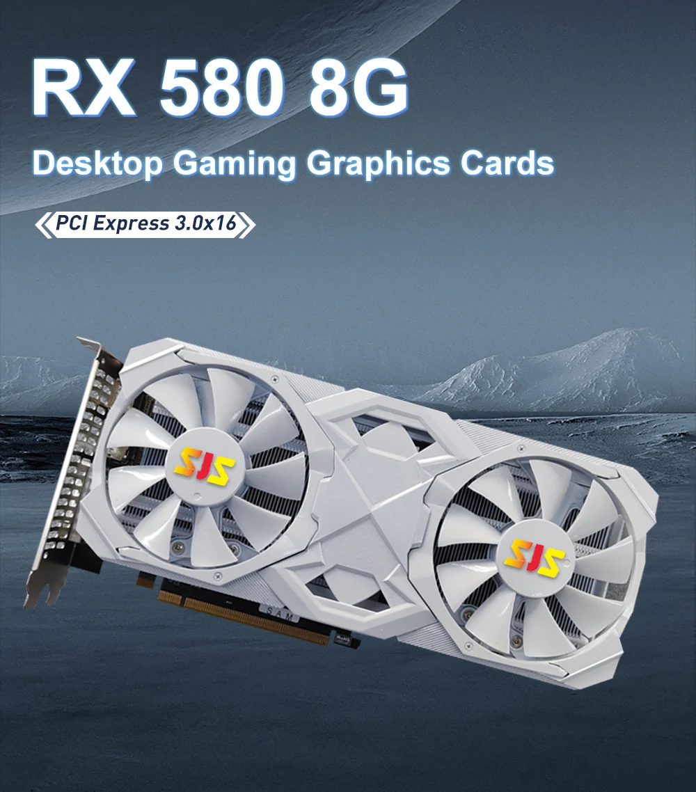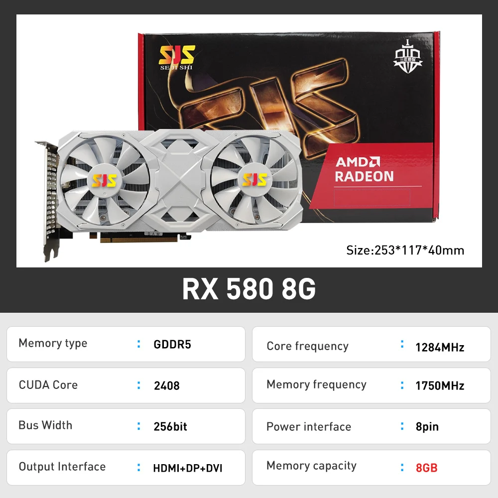 Comprar SJS-tarjeta gráfica RX 580, 8G, 256Bit, 2048SP, GDDR5, AMD, GPU, RX580, tarjeta de vídeo blanca, Radeon, 8GB, placa de vídeo para minería