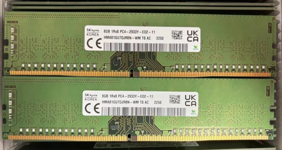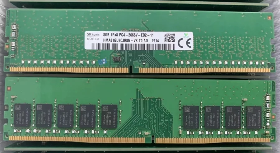 Ordené dos módulos de RAM SK Hynix UDIMM ECC de 8GB (una sola fila) a 2666MT/s. Recibí el modelo genuino HMA81GU7CJR8N-VK tal como se esperaba. Sin problemas aparentes. Bajo carga con Passmark Memtest86 (se informa que Memtest86+ de código abierto no muestra errores corregidos), no se reportaron errores durante 4 pruebas.