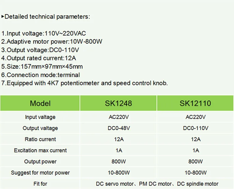 Comprar SK12110 12A 0-110VDC Fuente de alimentación reguladora de velocidad Entrada 220VAC Fuente de control de motor PWM para motor de husillo CC