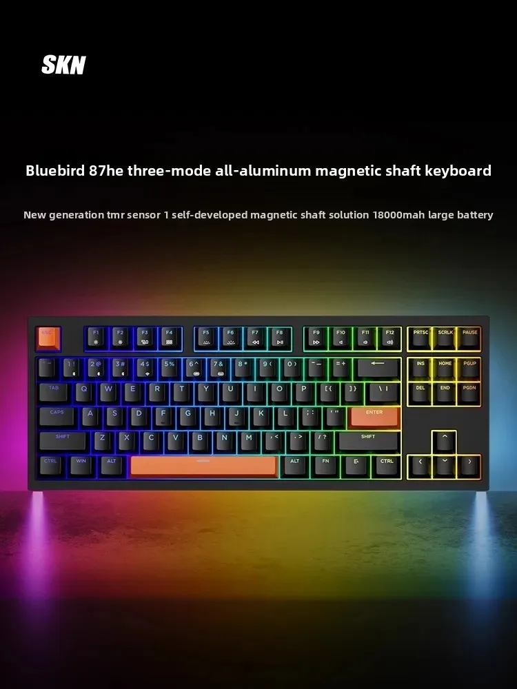 Comprar SKN QIingniao 87HE teclado para juegos con interruptor magnético, teclado inalámbrico de deportes electrónicos totalmente de aluminio, junta de liberación rápida multimodo, regalos