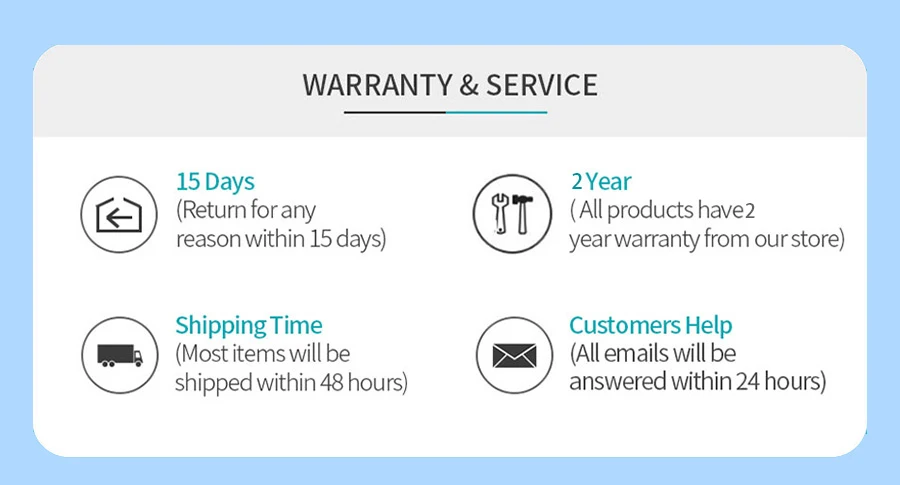 7. Usually shipment within 24 hours after placing the order (except holidays)