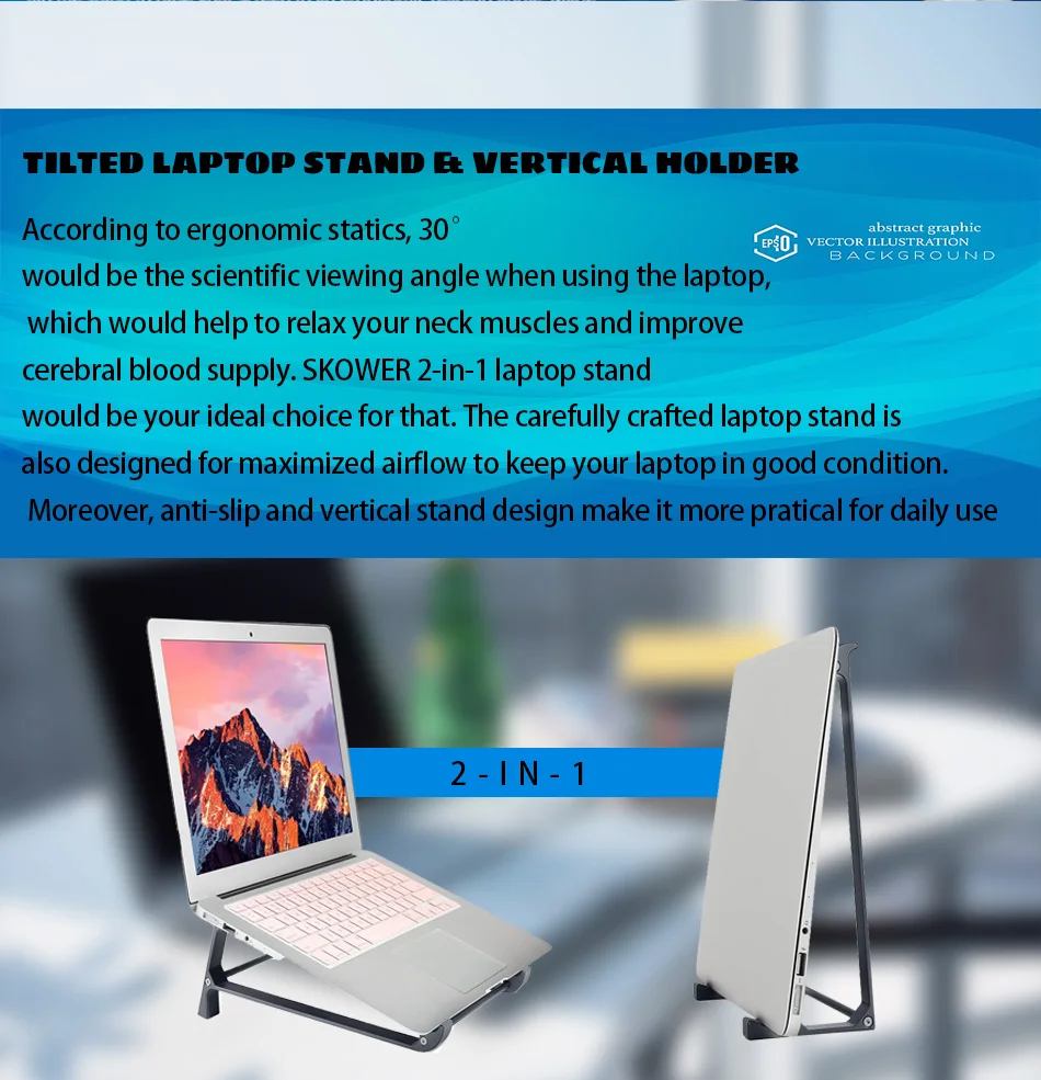 Comprar SKOWER-soporte Vertical de aluminio para portátil, soporte plegable para Macbook Air Pro, tableta