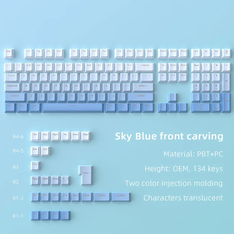Nombre de la tecla: Tecla frontal azul cielo tallada a través de la luz