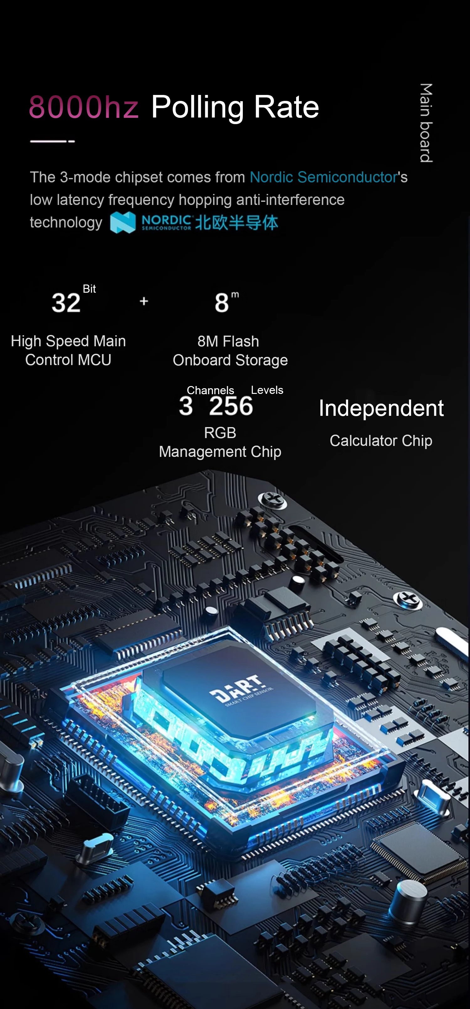 El teclado inalámbrico GK104 Pro tiene 3 métodos de conexión, Bluetooth inalámbrico de 5,1/2,4 Ghz/con cable USB-C, módulo de chip inalámbrico nórdico de alto rendimiento incorporado, menor retardo, tasa de sondeo de 8K, retardo de 0,125 milisegundo, jugador más adecuado.Compatible con múltiples dispositivos, se puede cambiar sin problemas entre teléfono/PC/portátil/tableta, lo cual es más adecuado para realizar múltiples tareas.La capacidad de la batería del teclado es de 8000 mAh y se puede cargar mediante USB-C, lo que puede soportar un uso prolongado de alta intensidad.