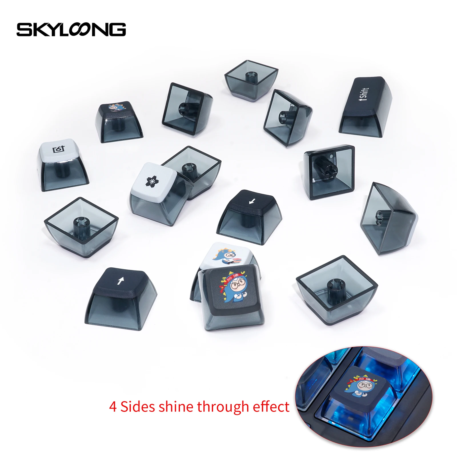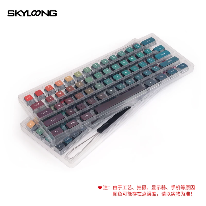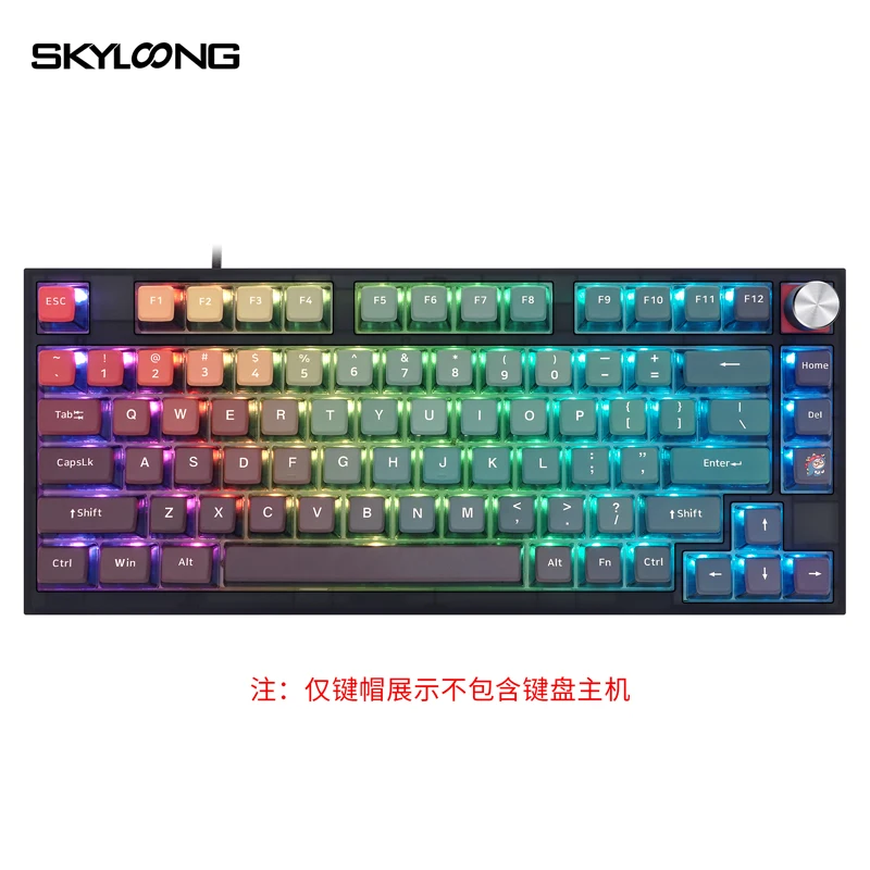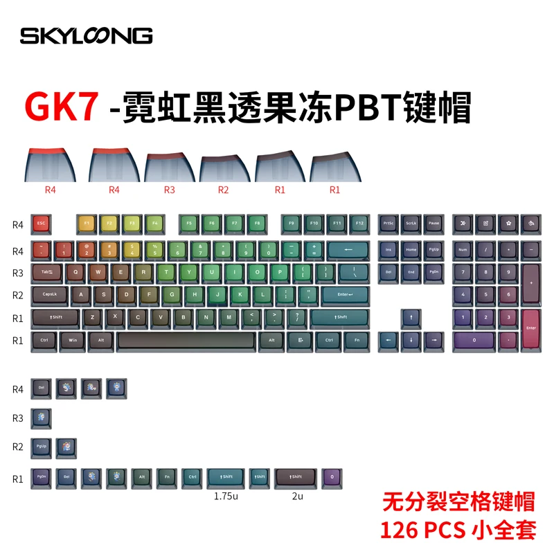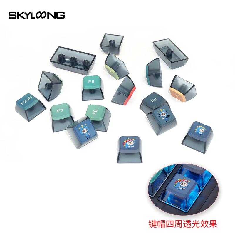 Skyloong GK7 perfil Doubleshots + Dye-Subbed Back Lit Keycap SetEspecificacionesDoubleshots + tinte subbed + Estructura de tallo PBTPBT gruesoCompatible con interruptores MX (y clones)Perfil GK7La Barra espaciadora es estándar 6.25UPor favor, preste atención: solo teclas, sin incluir otras cosas.
