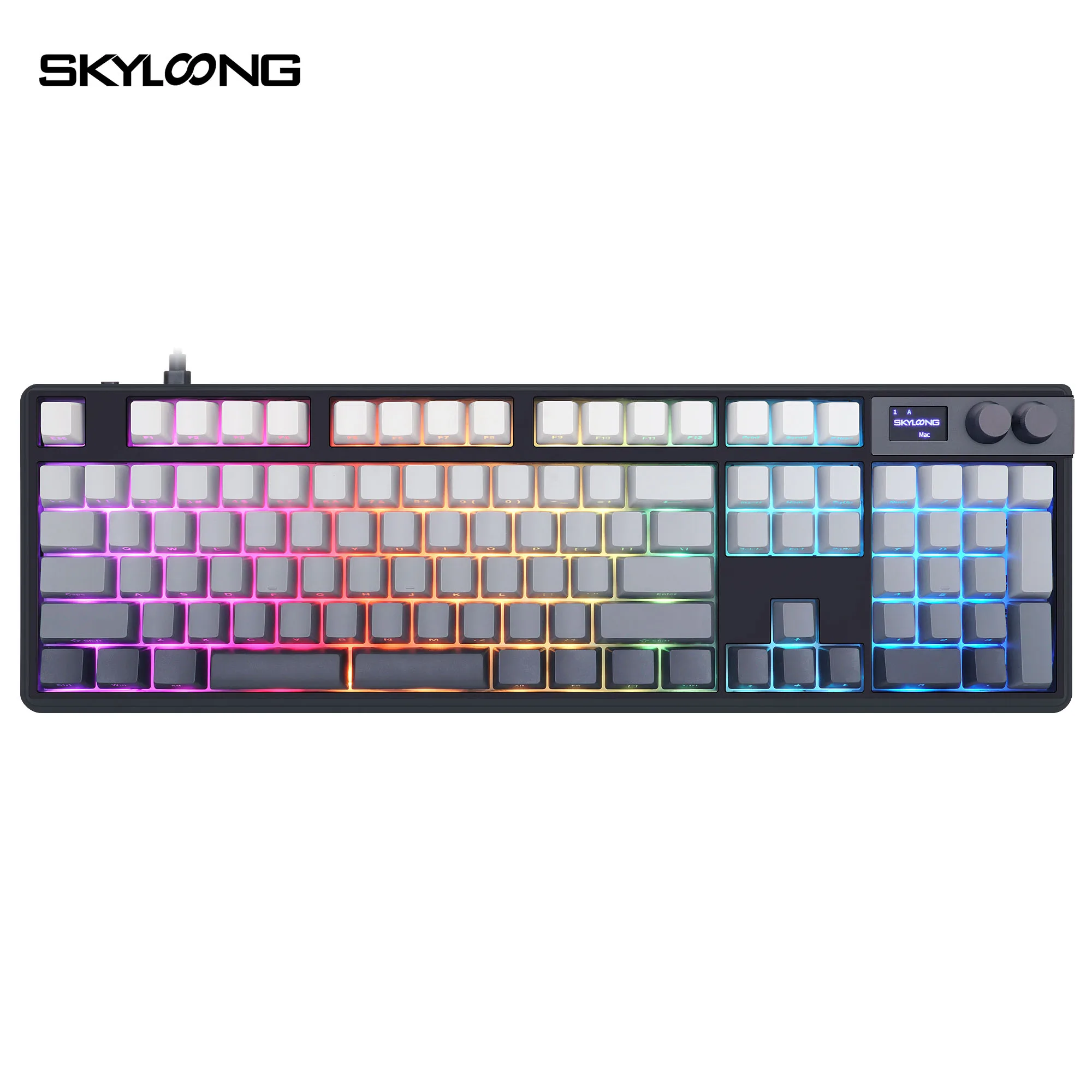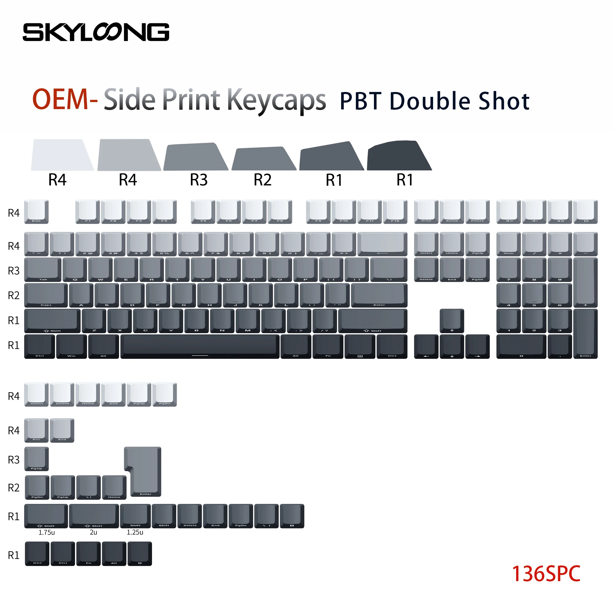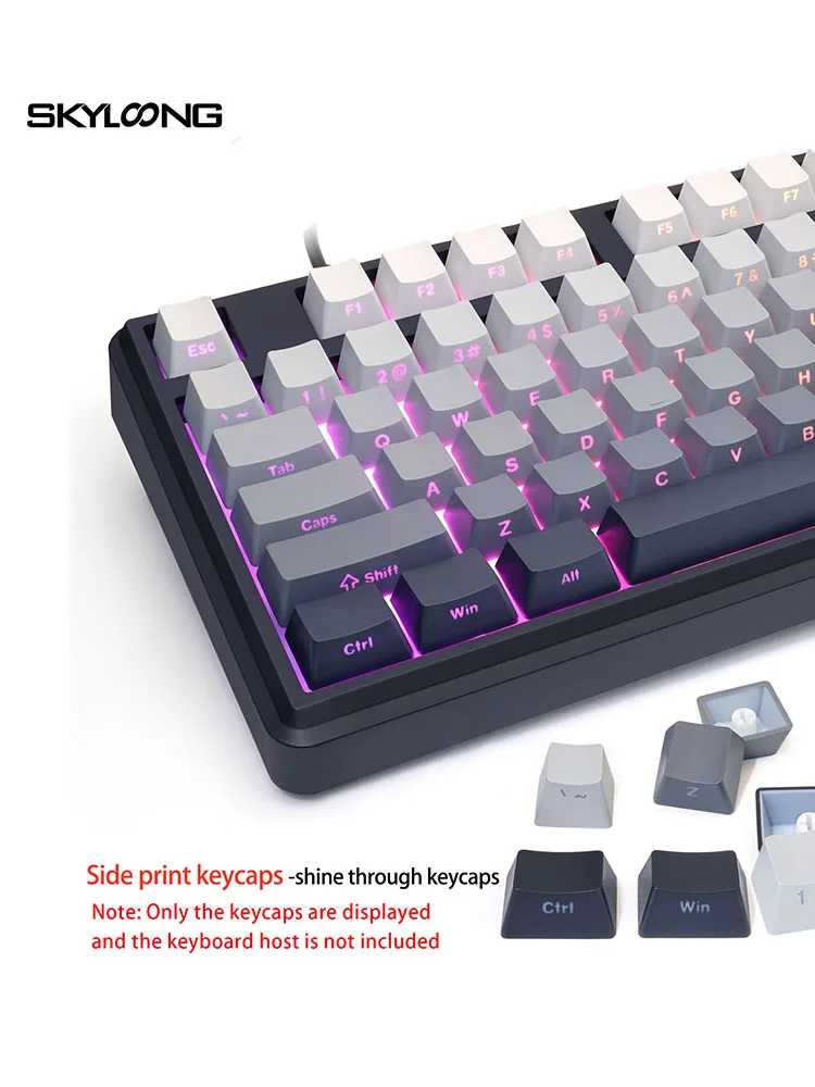 Teclas SKYLOONG con impresión lateral, teclas PBT de perfil OEM, doble disparo, 136 Uds., teclas de Color degradado negro/gris para teclado