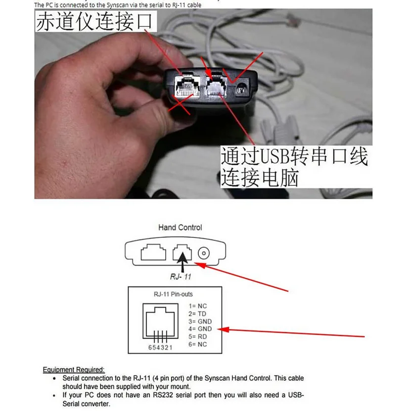Cable USB a RJ11 para Skywatcher EQ6 EQ5 HEQ5 EQMOD ASCOM PC para conectar el controlador de mano Synscan
