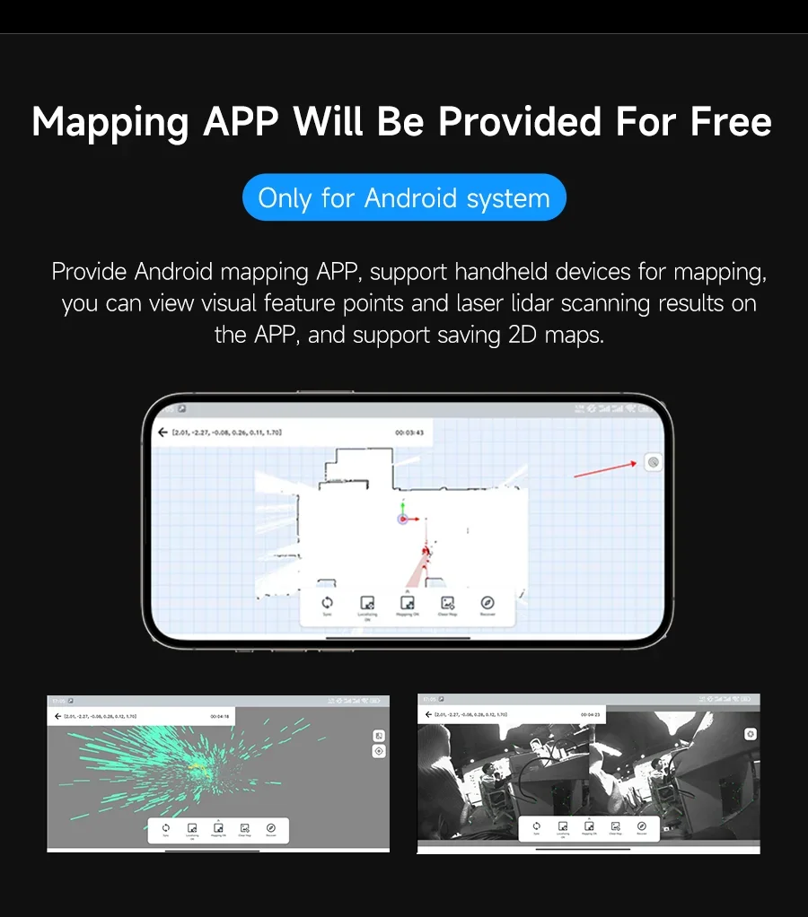 2.No necesita control maestro, puede completar las funciones de mapeo y posicionamiento 3D en interiores y exteriores.
