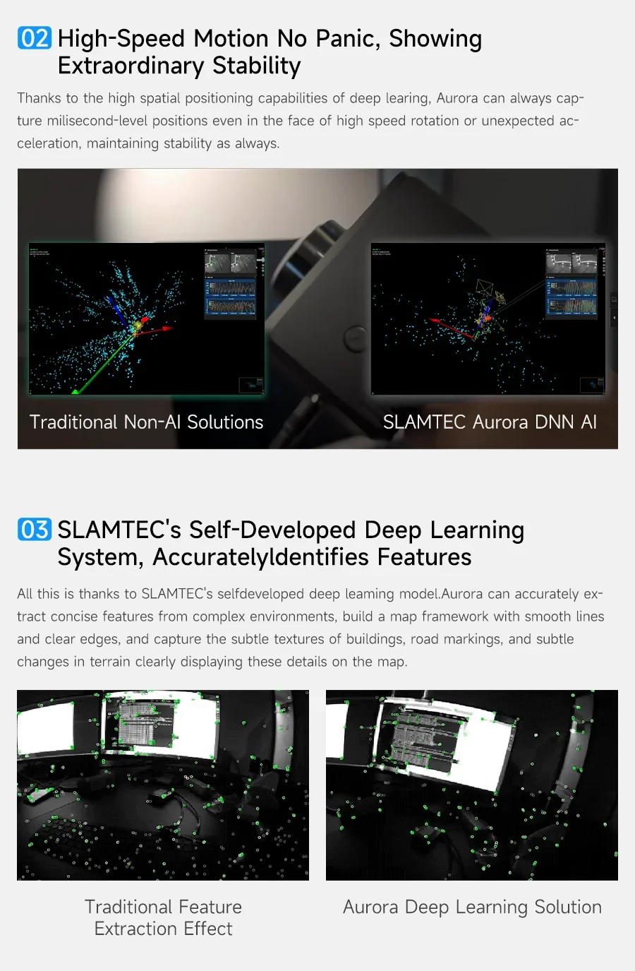 4.Integra tecnología de IA para mejorar las capacidades de percepción 3D, manteniendo un mapeo y un posicionamiento estables incluso en entornos de movimiento de alta velocidad.