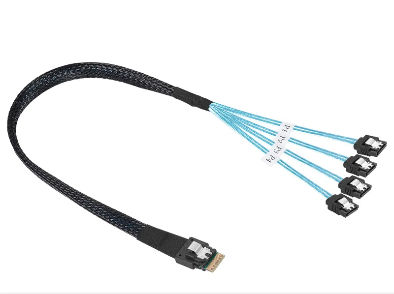 Comprar Slim Line SAS 4.0 SFF-8654 4i 38pin Host a 4 SATA 7pin Target Disco Duro Fanout Raid Cable 0,5 m 1m