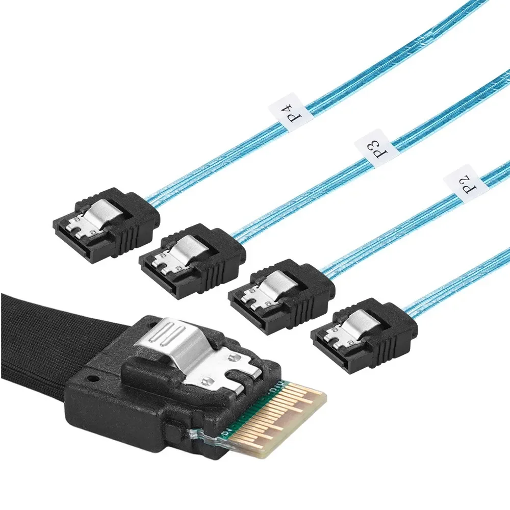 Comprar Slim Line SAS 4.0 SFF-8654 4i 38pin Host a 4 SATA 7pin Target Disco Duro Fanout Raid Cable 0,5 m 1m