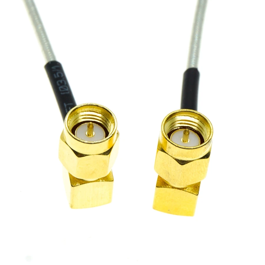 Comprar SMA macho de ángulo recto a SMA macho de ángulo recto RA Jumper lote 0.086 "Coax semirflexible cable Pigtail rígido RG405