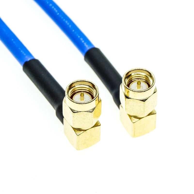 Comprar SMA macho de ángulo recto a SMA macho, Cable Coaxial semiflexible RG405 RG-405, 0.086 ", 50ohm, color azul