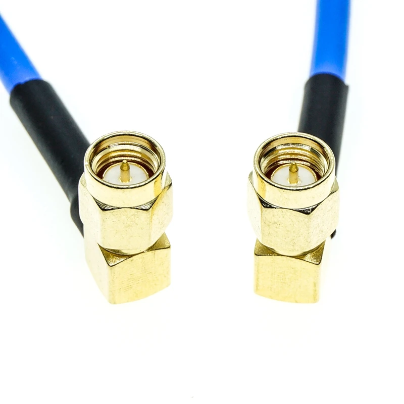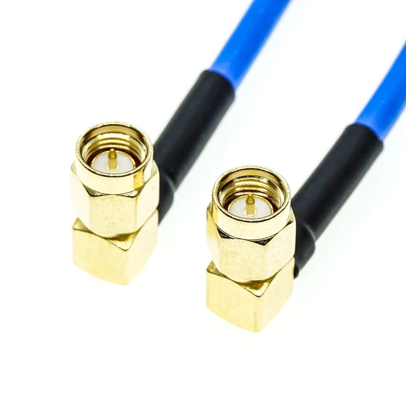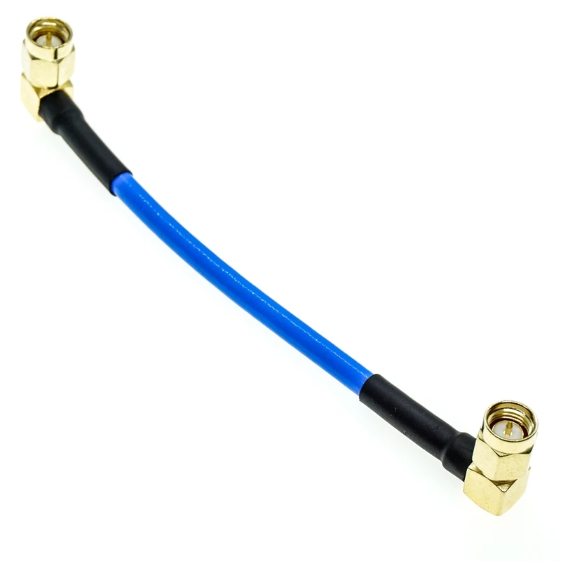 Comprar SMA macho de ángulo recto a SMA macho, Cable Coaxial semiflexible RG405 RG-405, 0.086 ", 50ohm, color azul