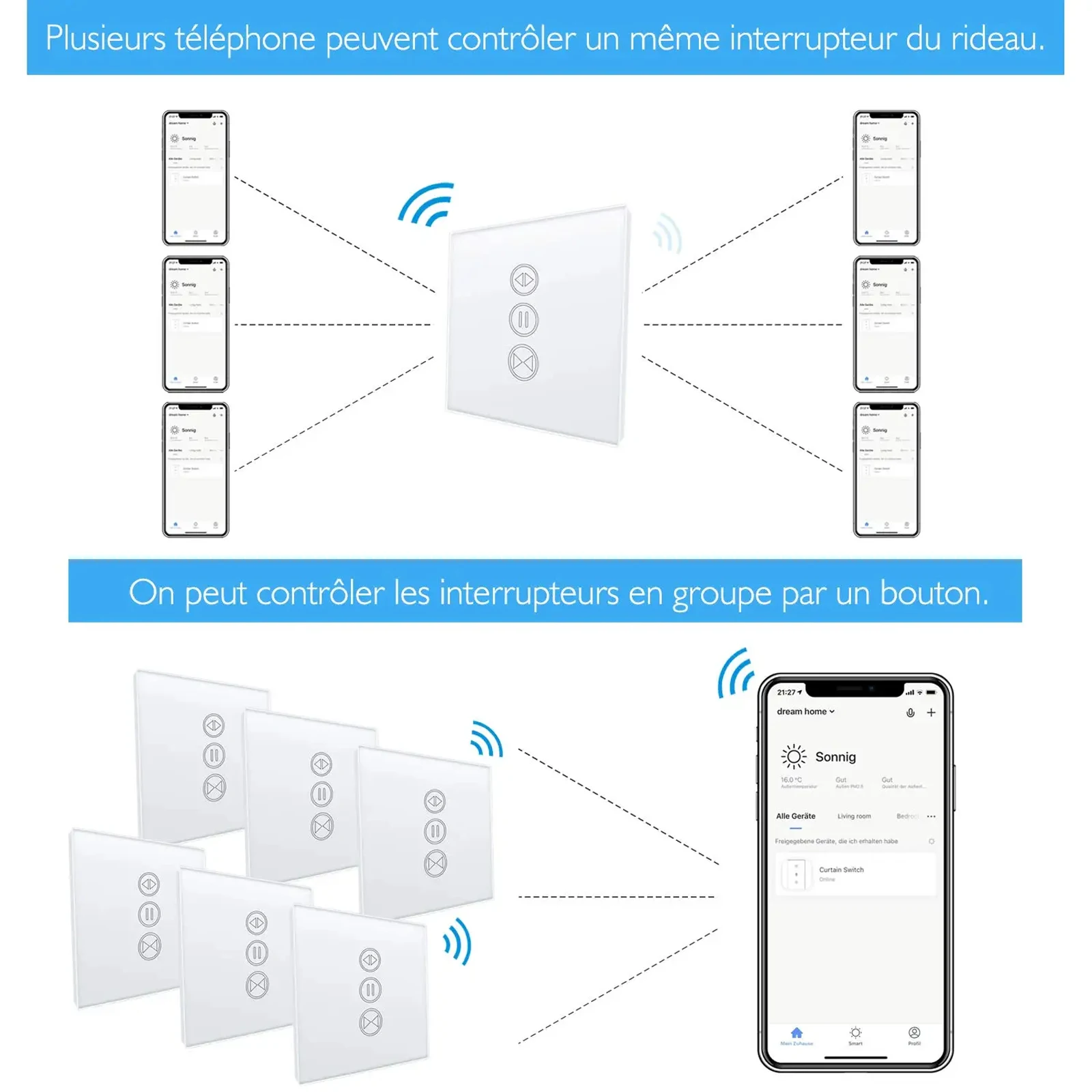 El control remoto de cortina RF solo puede funcionar con el interruptor de persiana en este listado, porque el interruptor de cortina en este listado es la versión RF + WiFi.No compre los interruptores de cortina en otro listado, aunque sean más baratos, no son compatibles.