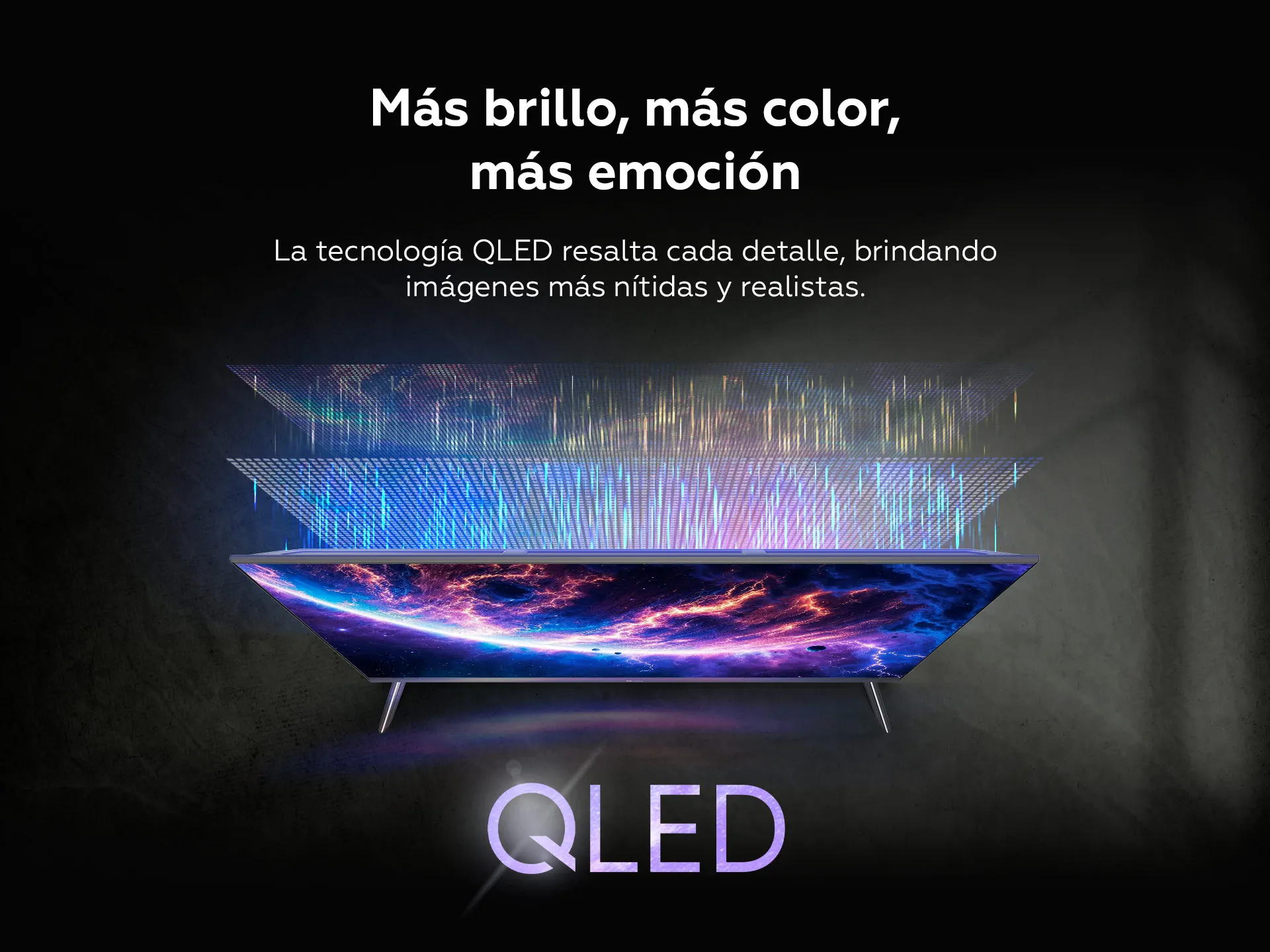 La tecnología de pantalla Qled utiliza un sistema de filtrado de luz a través de micro cristales llamados Quantum dots. De esta forma el panel puede representar una gama de colores más amplia, mostrando imágenes más vivas e intensas.