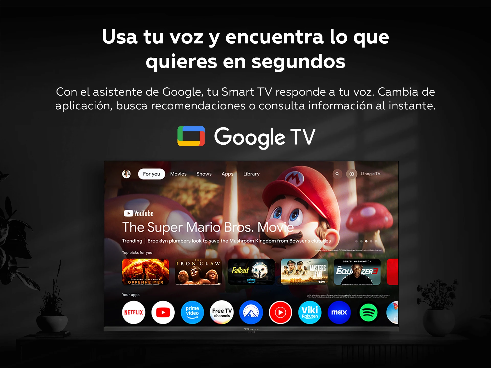 Smart TV 50 pulgadas Qled 4k Hey Google Official Assistant con control por voz. Televisor Android 14 - TD Systems M50K21GLQ
