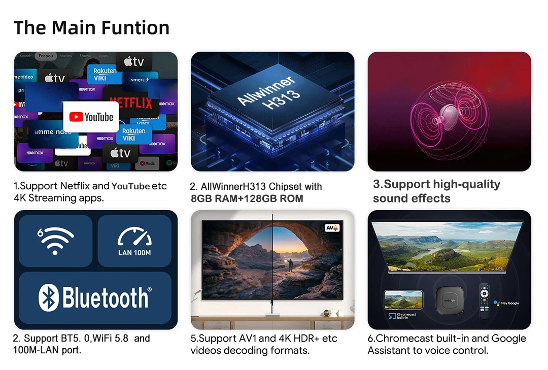 Smart TV Box 8GB 128GB Android 14 ATV Allwinner H313 Asistente de Google 8K Video 4k HDR10 Reproductor multimedia T1 Decodificador muy rápido