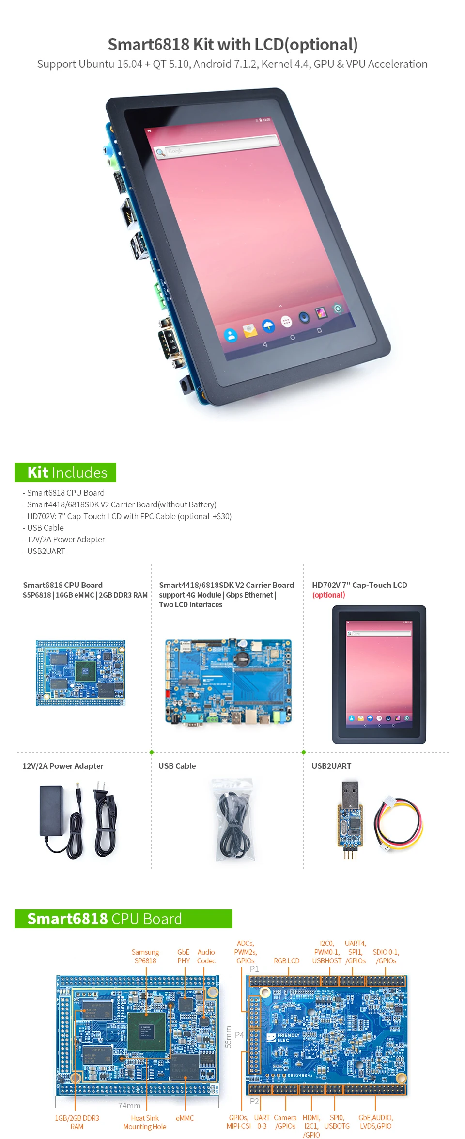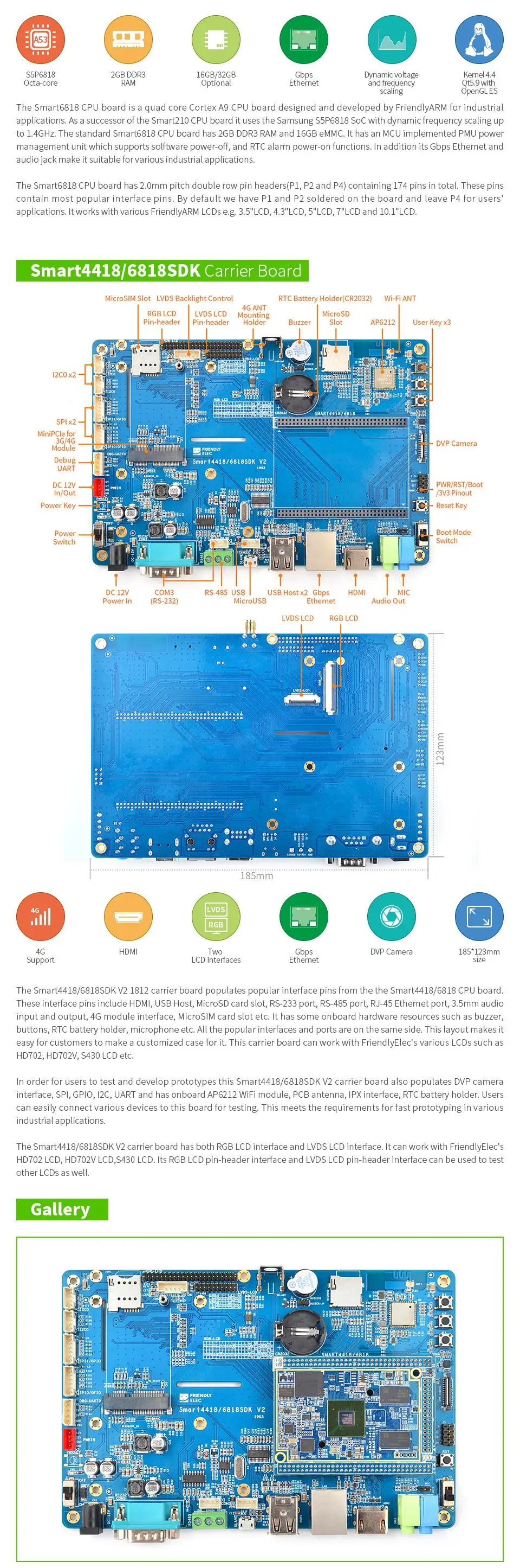 SMART6818SDK(2,0) S5P6818 4,3 '7' 10,1'LVDS LCD 4G 800*480 800*1280 pantalla capacitiva FriendlyELEC