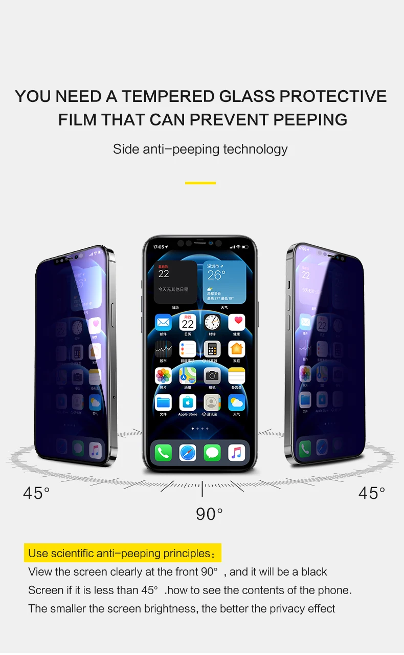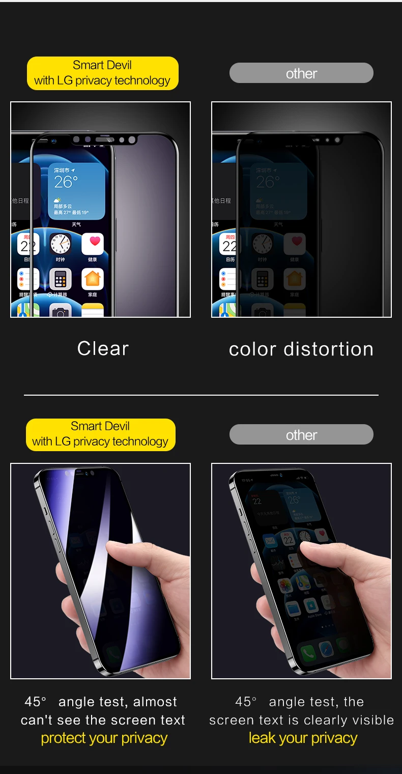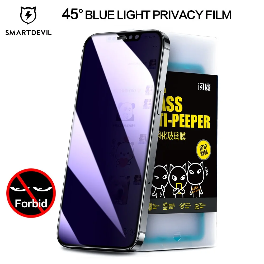 Comprar SmartDevil Anti Blue Ray Spy Glass para iPhone 14 13 12 11 Pro Max Protector de pantalla de privacidad cubierta completa para iPhone X XR XS Max