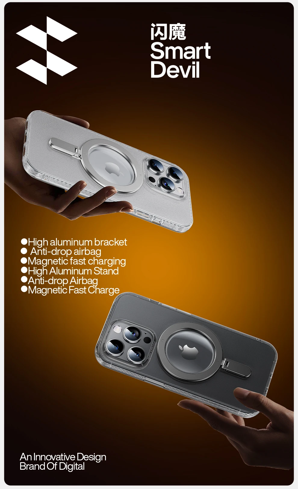 SmartDevil-funda de teléfono con soporte magnético para iPhone, cubierta trasera de carga inalámbrica Magsafe con protección de pantalla de vidrio, 13, 14 Pro Max