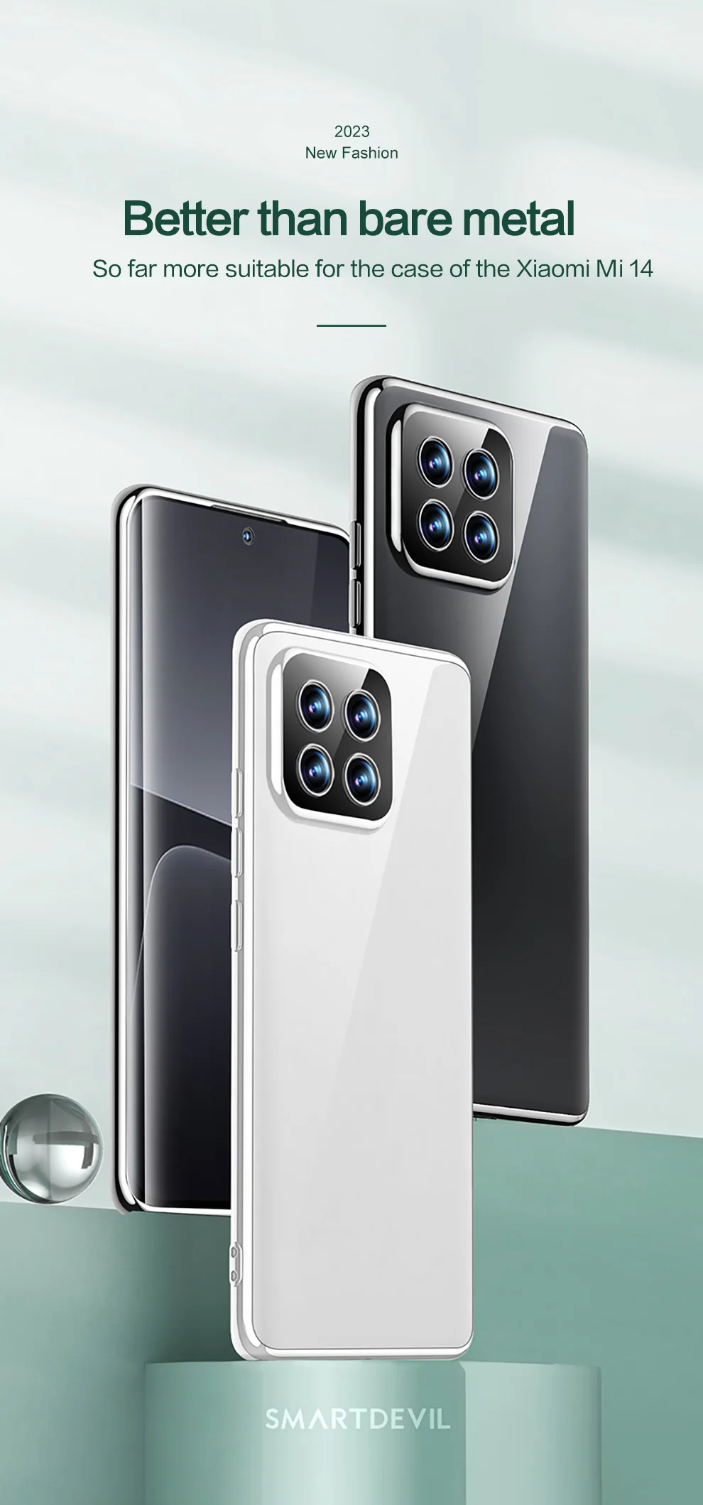 SmartDevil-funda de TPU galvanizada para teléfono Xiaomi 14 Pro, cubierta de parachoques transparente a prueba de polvo, lente antiarañazos, protección completa