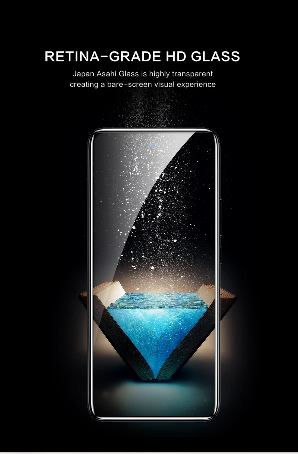 Este es un protector de pantalla de vidrio templado duro 9H, para proteger eficazmente su teléfono de caídas y arañazos hechos con llaves, monedas, cuchillos o cualquier otro material duro.