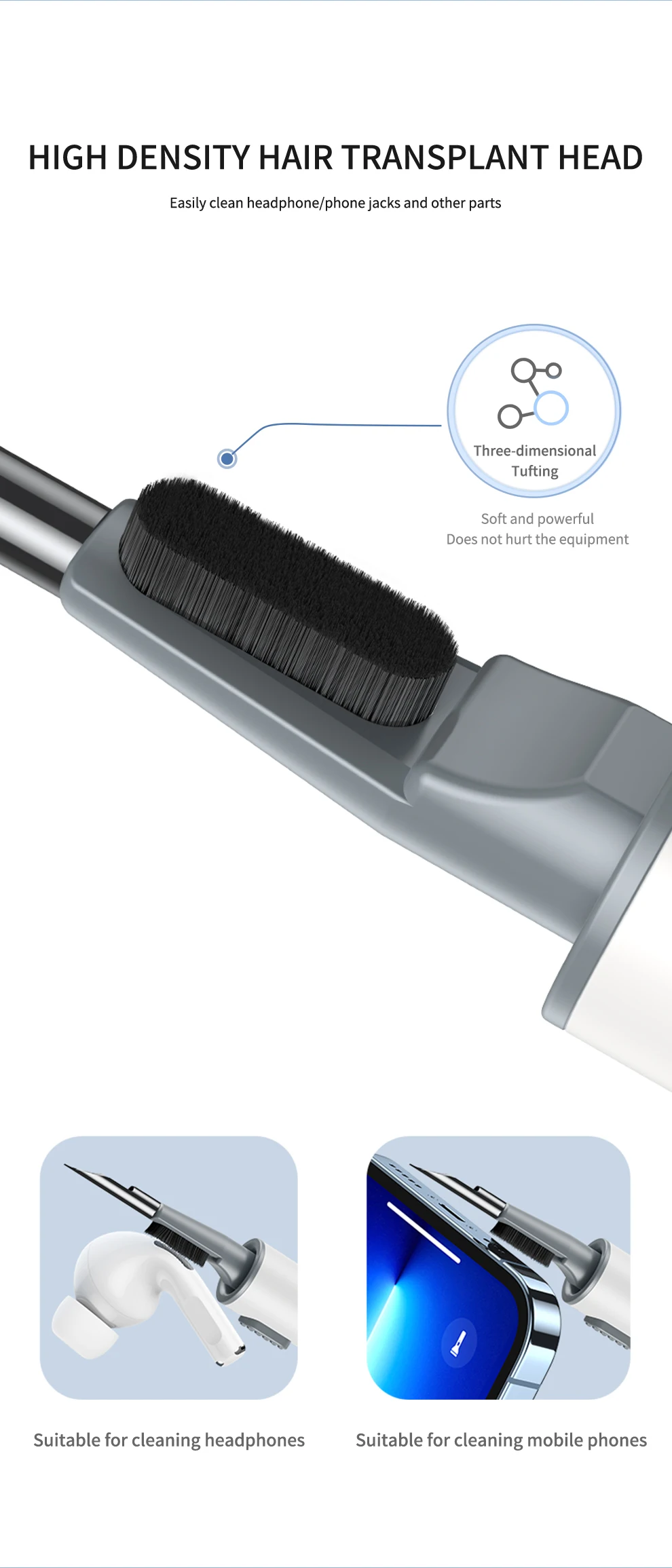 Cepillo de alta densidad:Limpia fácilmente la suciedad del orificio de salida de sonido del auricular y otras partes.