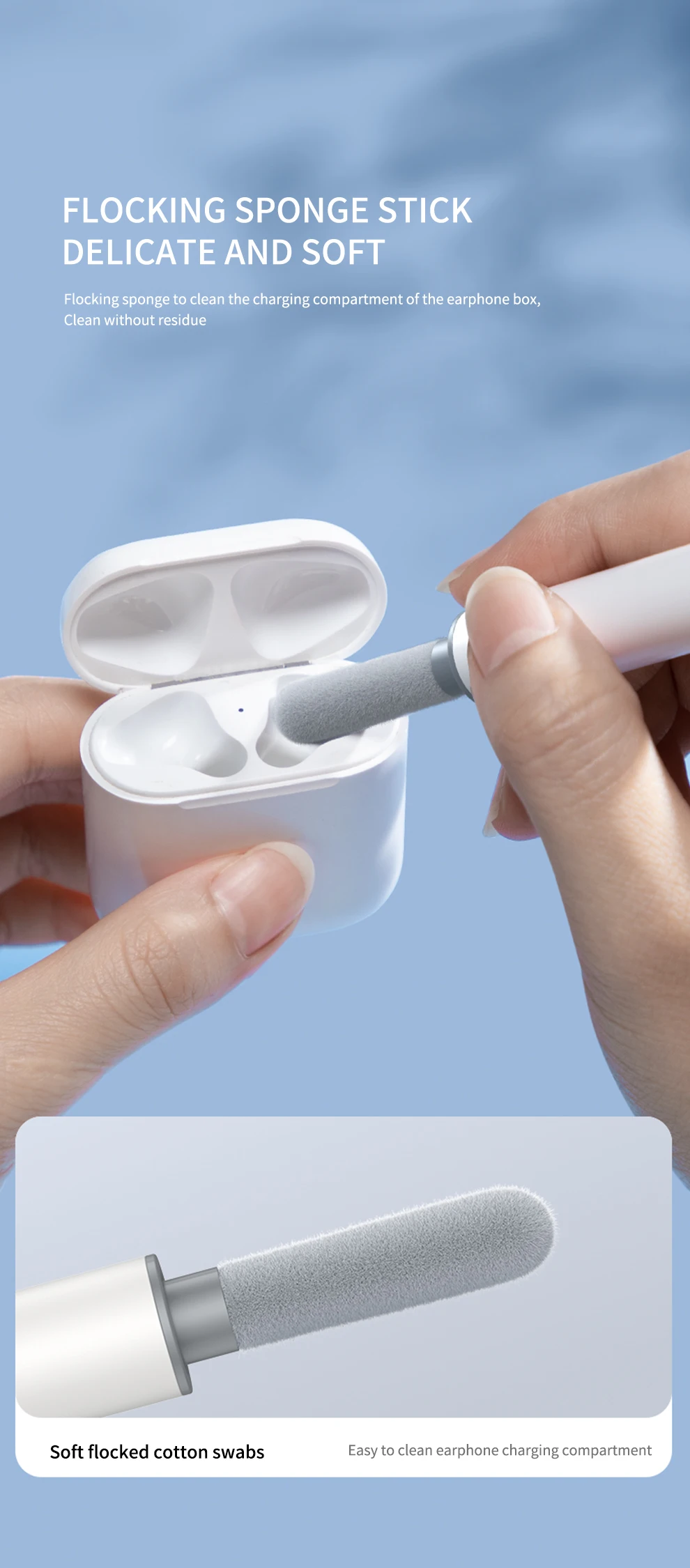 Esponja flocada:La esponja flocada delicada y suave puede limpiar el polvo en el estuche de carga inalámbrico del auricular