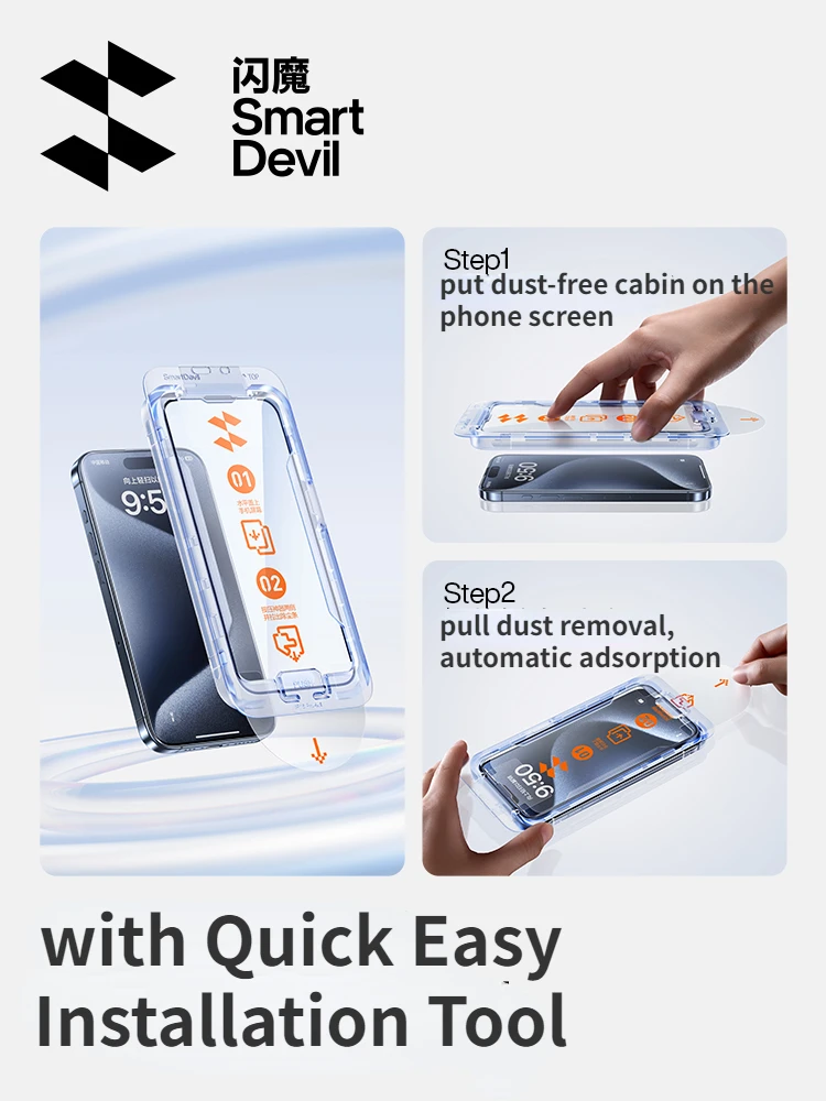 SmartDevil-Película de vidrio templado sin polvo para iPhone 15 Pro Max, Protector de pantalla transparente HD para iPhone 15 con herramienta de Instalación rápida