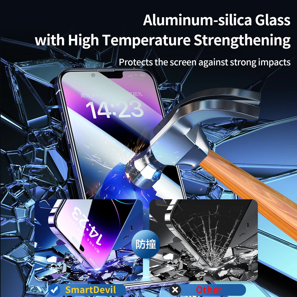 SmartDevil-Protector de pantalla para iPhone 14 Pro Max 13, Protector de pantalla de un toque de vidrio templado, fácil de instalar, borde a borde, transparente