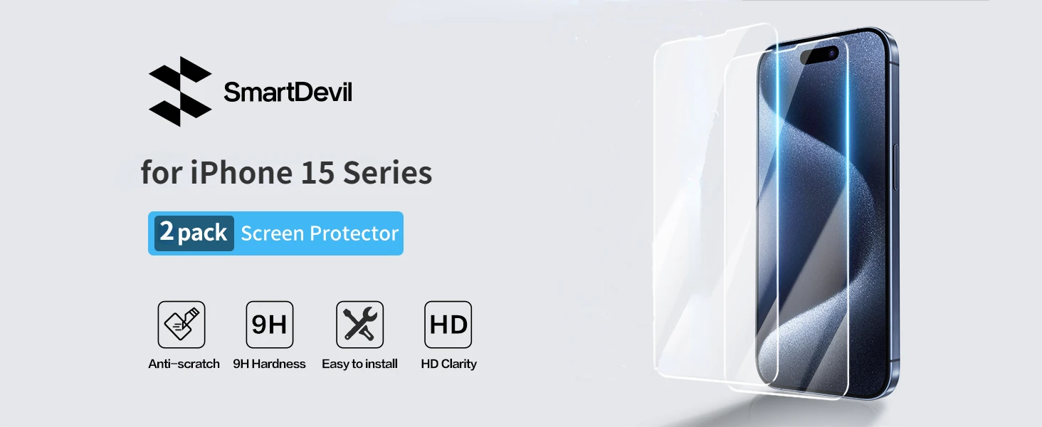 Comprar SmartDevil-Protector de pantalla para iPhone 15 Pro Max 15 Pro HD, cristal templado transparente para iPhone 15 14 13, antihuellas, 2 unidades