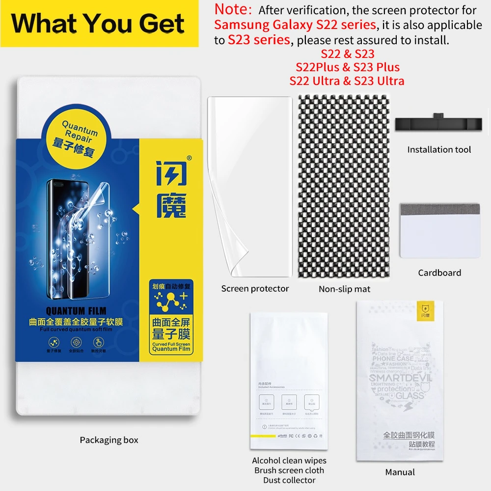 Nota: Después de la verificación, el protector de pantalla para la serie Samsung Galaxy S22 también es aplicable a la serie S23, puede estar seguro de instalar.
