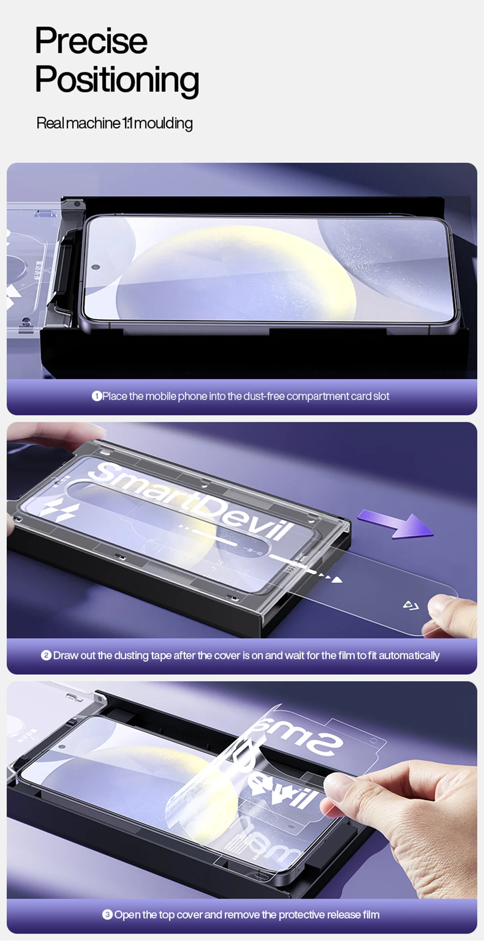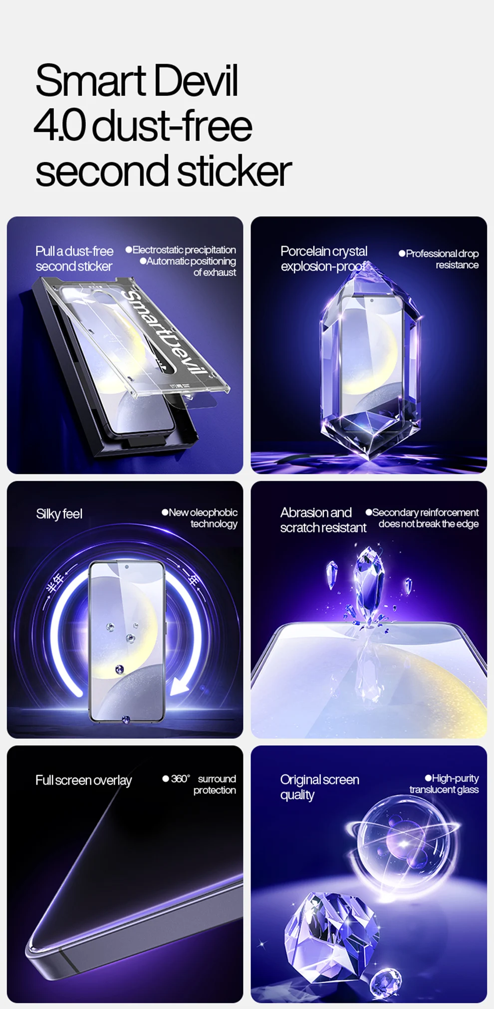 SmartDevil Protector de pantalla sin polvo para Samsung S24 HD película de vidrio templado transparente para Samsung S24 Plus antihuellas