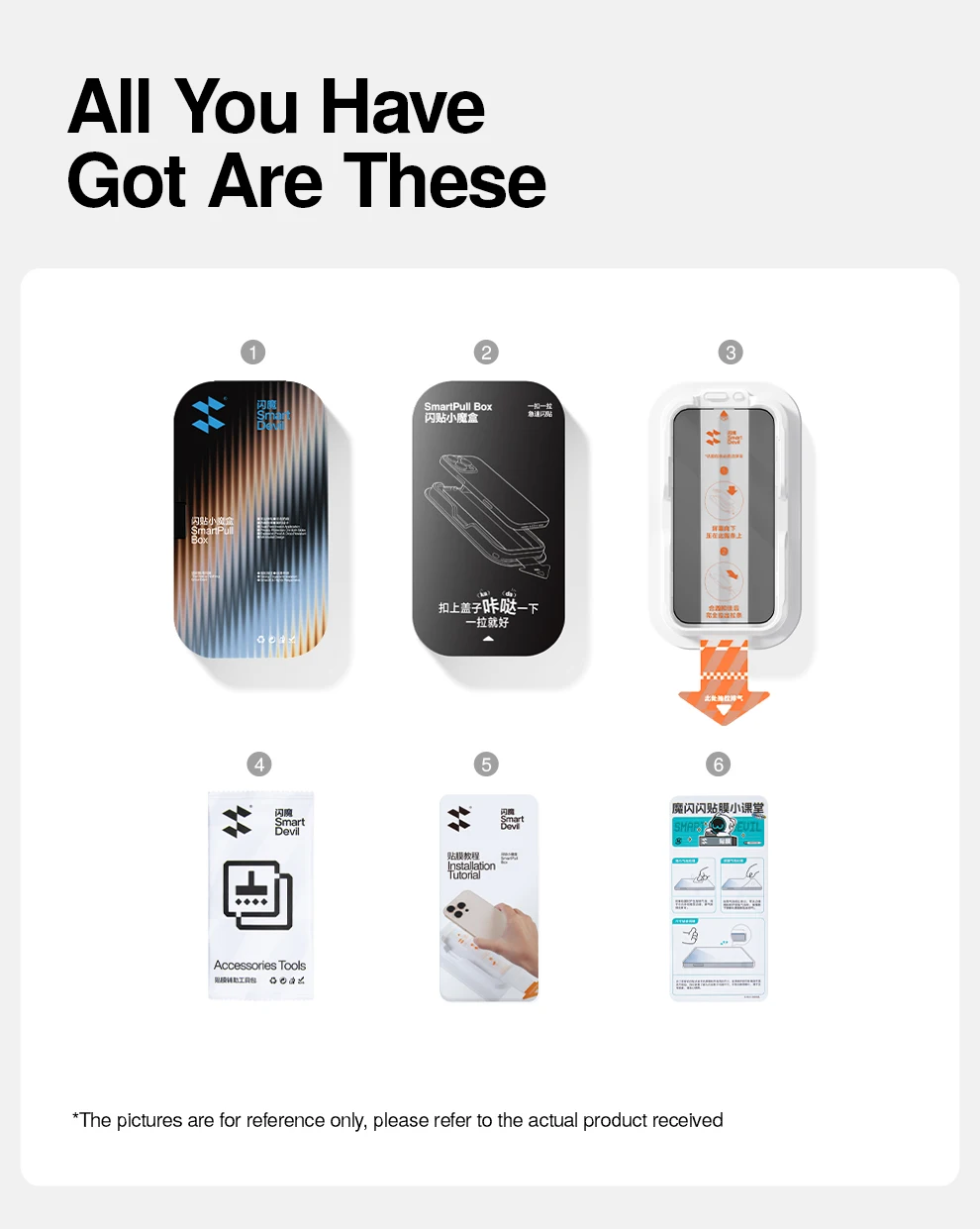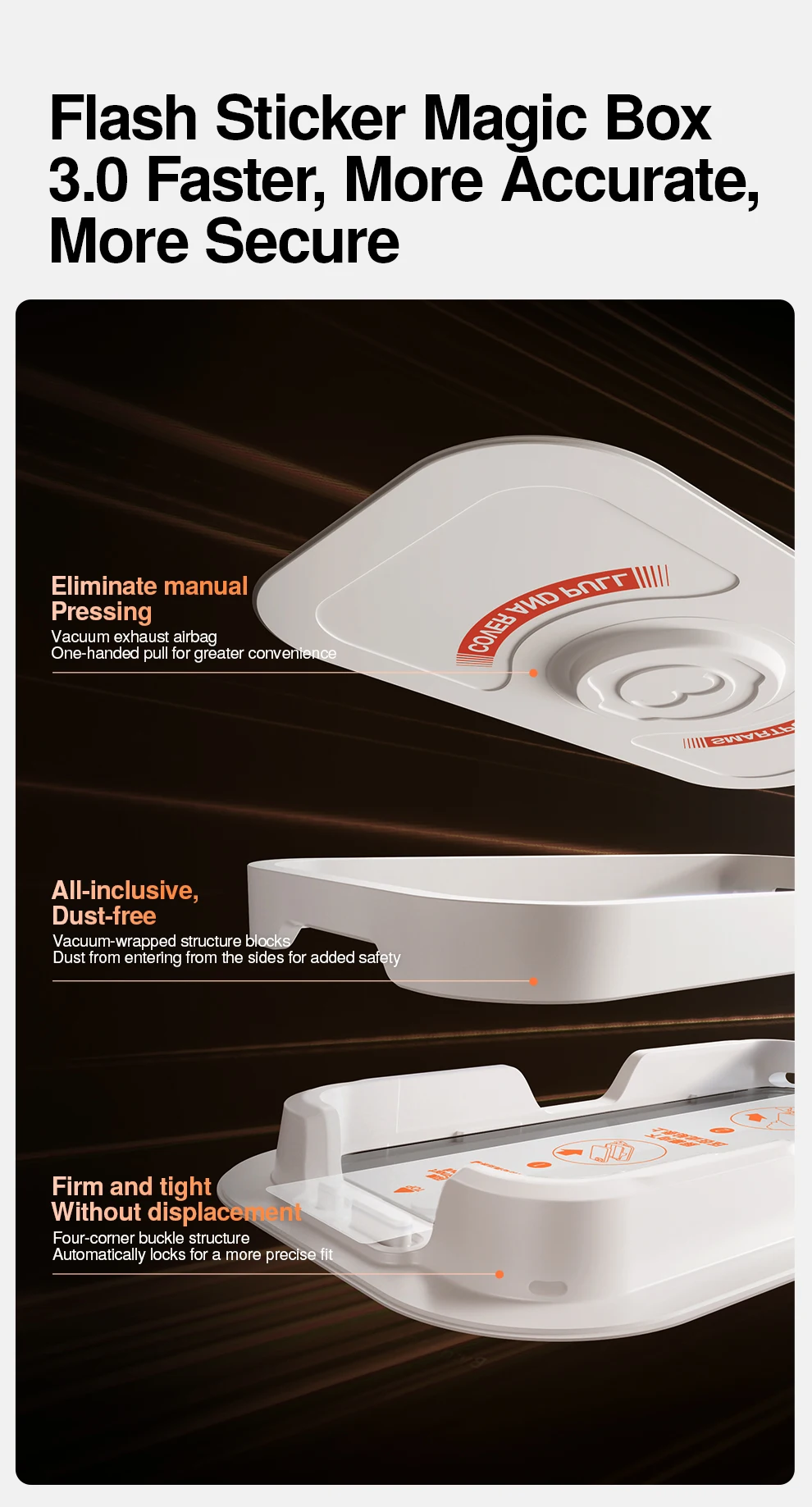 Equipada con una herramienta de instalación automática, esta película de vidrio templado simplifica el proceso de aplicación para un acabado sin burbujas.