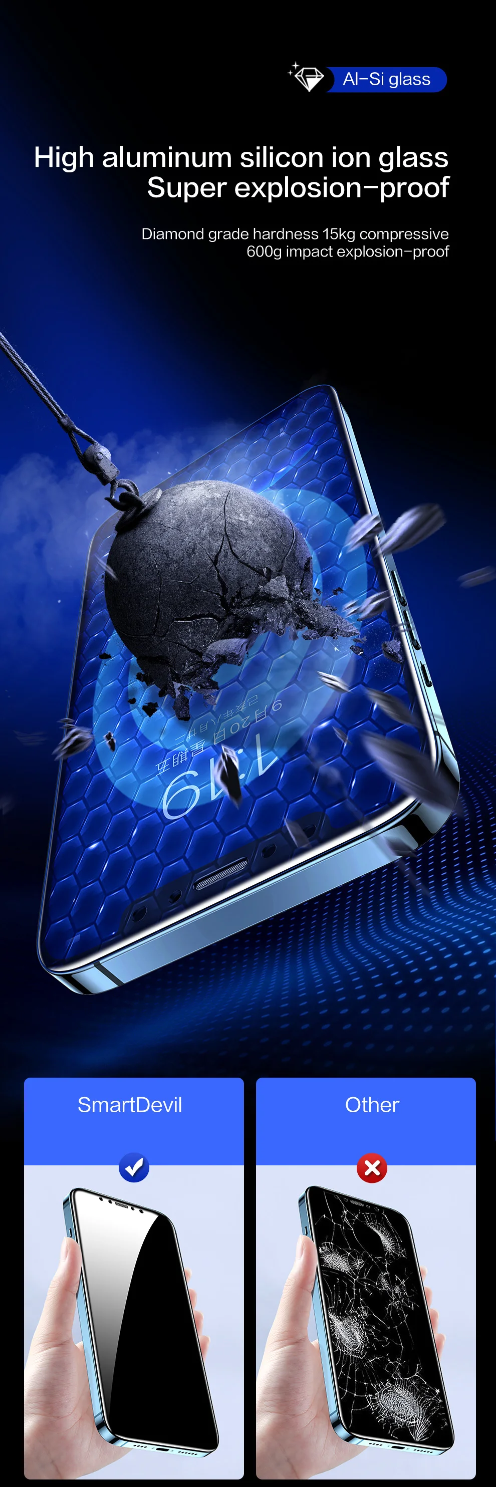 Comprar SmartDevil protectores de pantalla de diamante para iPhone 14, 13, 12 Pro Max, vidrio para iPhone 13, 12 mini, cubierta completa HD Anti Blue Ray