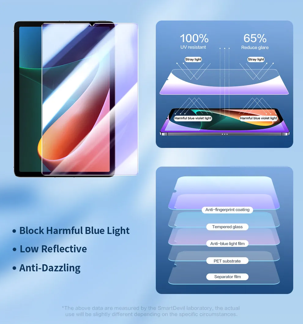 Comprar SmartDevil vidrio templado para Xiaomi Mi Pad 6 11 pulgadas Pad 5 5Pro tableta de 12,4 pulgadas 9H Protector de pantalla HD Anti rayos azules con herramienta
