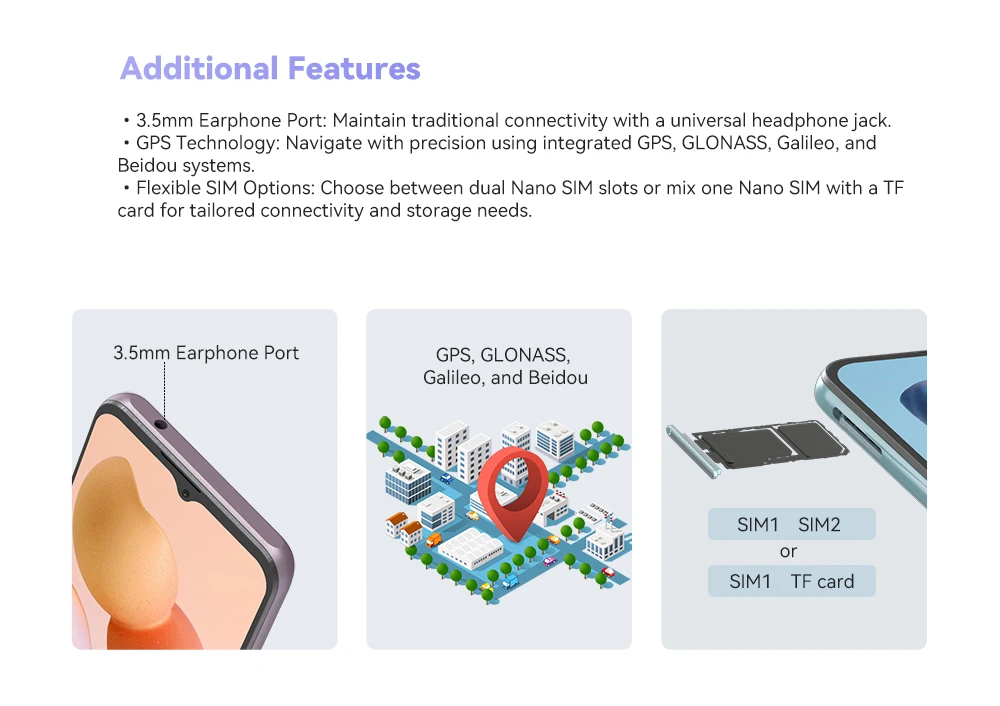 •Opciones de SIM flexibles: elija entre dos ranuras Nano SIM o mezcle una Nano SIM con una tarjeta TF para necesidades de conectividad y almacenamiento personalizadas.