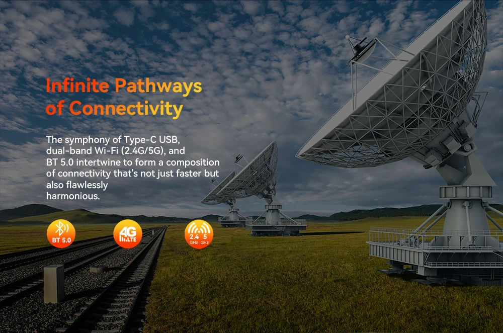 The symphony of Type-C USB, dual-band Wi-Fi (2.4G/5G), and BT 5.0 intertwine to form a composition of connectivity that's not just faster but also flawlessly harmonious.