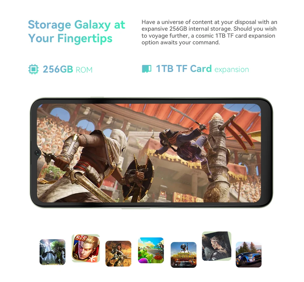 Have a universe of content at your disposal with an expansive 256GB internal storage. Should you wish to voyage further, a cosmic 1TB TF card expansion option awaits your command.