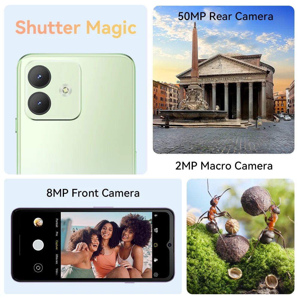 The 50MP rear camera takes snapshots that seem conjured from dreams, while the 2MP macro lens lets you explore the miniature wonders of our world. The 8MP front camera captures your essence with precision, ensuring every selfie is a masterpiece.
