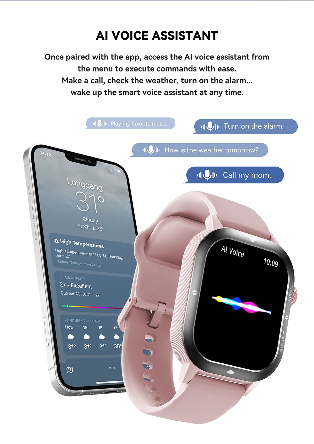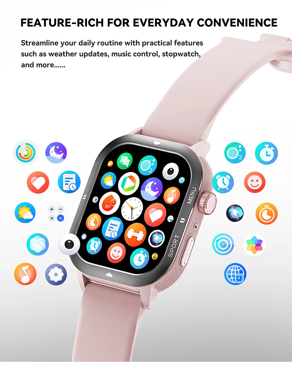 Datos (podómetro, calorías, distancia), detección de sueño, detección de frecuencia cardíaca, modo de ejercicio (100+), registro de ejercicio, detección de oxígeno en sangre, detección de estrés, clima, llamada bluetooth (conducción, contactos, contactos, historial de llamadas) Mensajes, control de música, Entrenamiento de respiración, Reloj mundial, Asistente de voz, Temporizador, Alarma, Cronómetro, Salud de la Mujer, Encuentra el teléfono, Calculadora, Modo DND, Modo de ahorro de energía, LevantarSonido y vibración, interruptor de marcación, estilo de menú, configuración de hora, bloqueo de cubierta, bloqueo de muñeca apagado, contraseña, llamada de emergencia SOS, sistema (reinicio, apagado, reinicio)