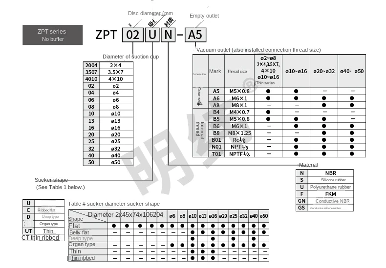 SMC mini boquilla ventosa de vacío accesorios manipuladores tipo película neumática ZP01U/02/03/04/06/08